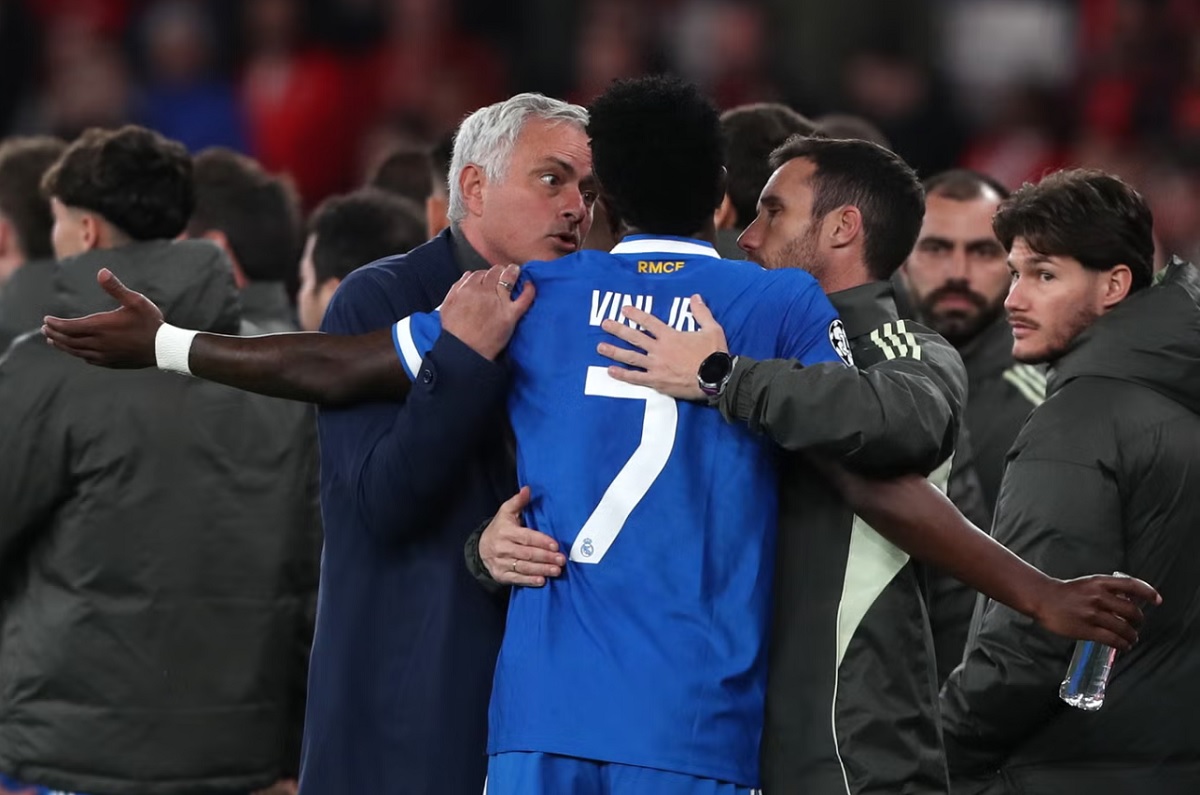 Jose Mourinho says he believes Vinicius Jr’s goal celebration was an inciting incident for the scenes that followed during Real Madrid’s 1-0 victory over Benfica in the Champions League play-off first leg.