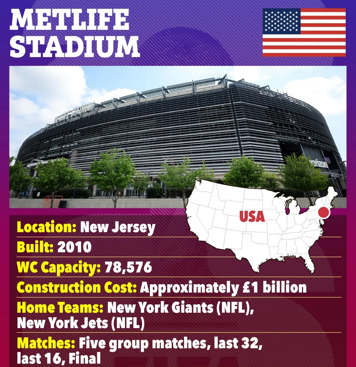 MetLife Stadium (New York New Jersey Stadium) – Capacity: 78,576