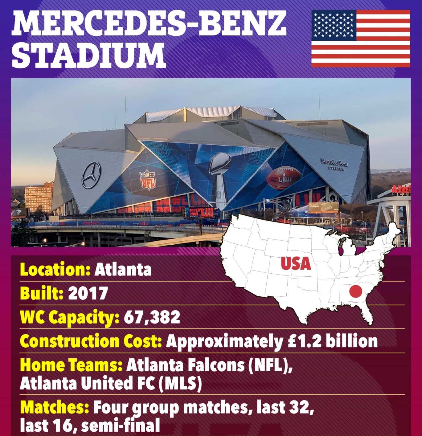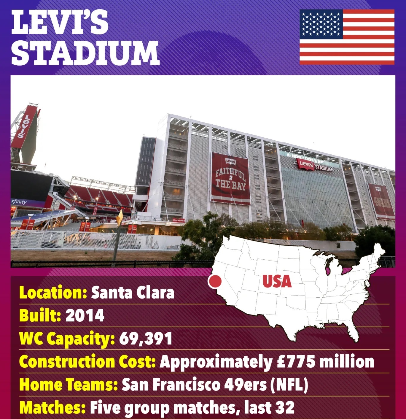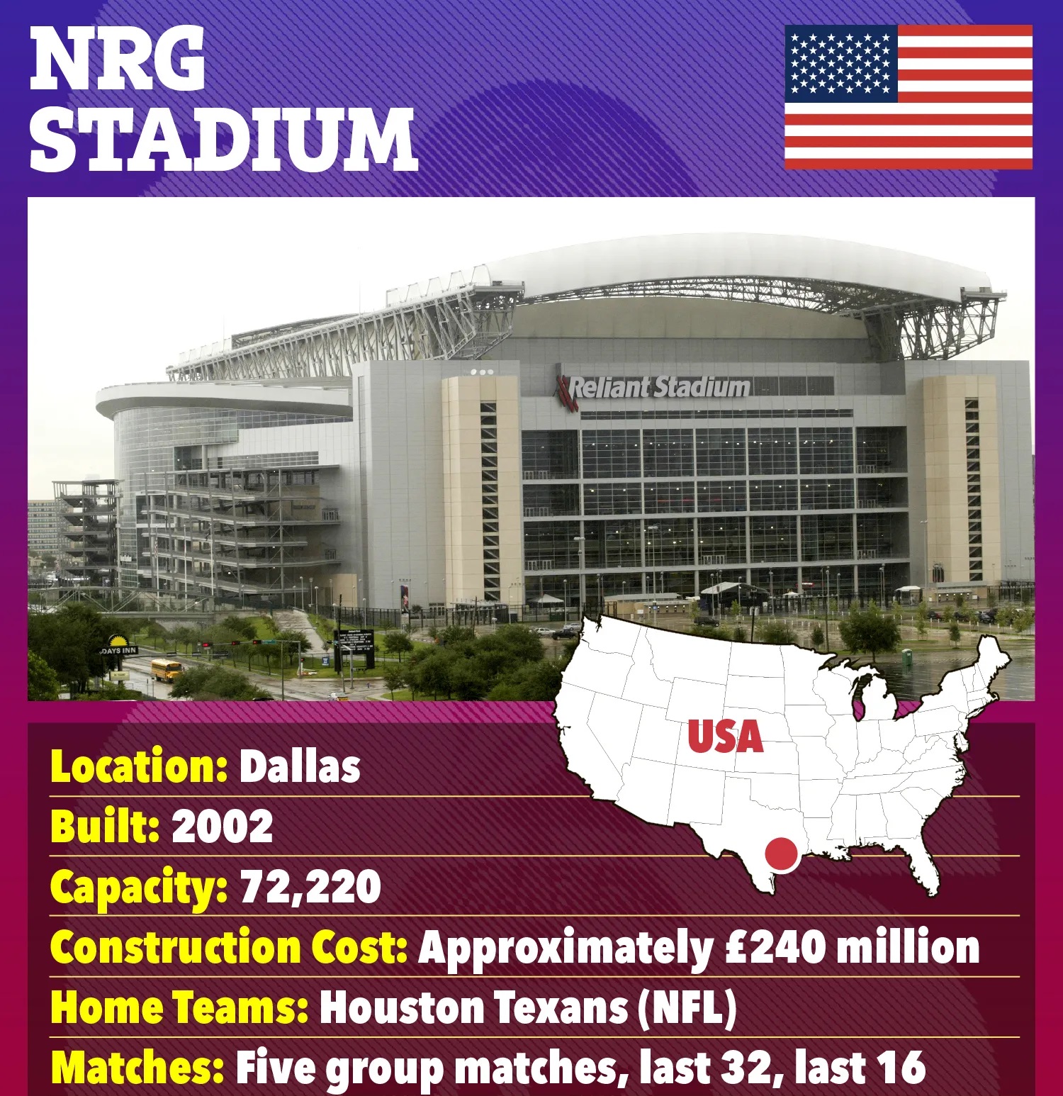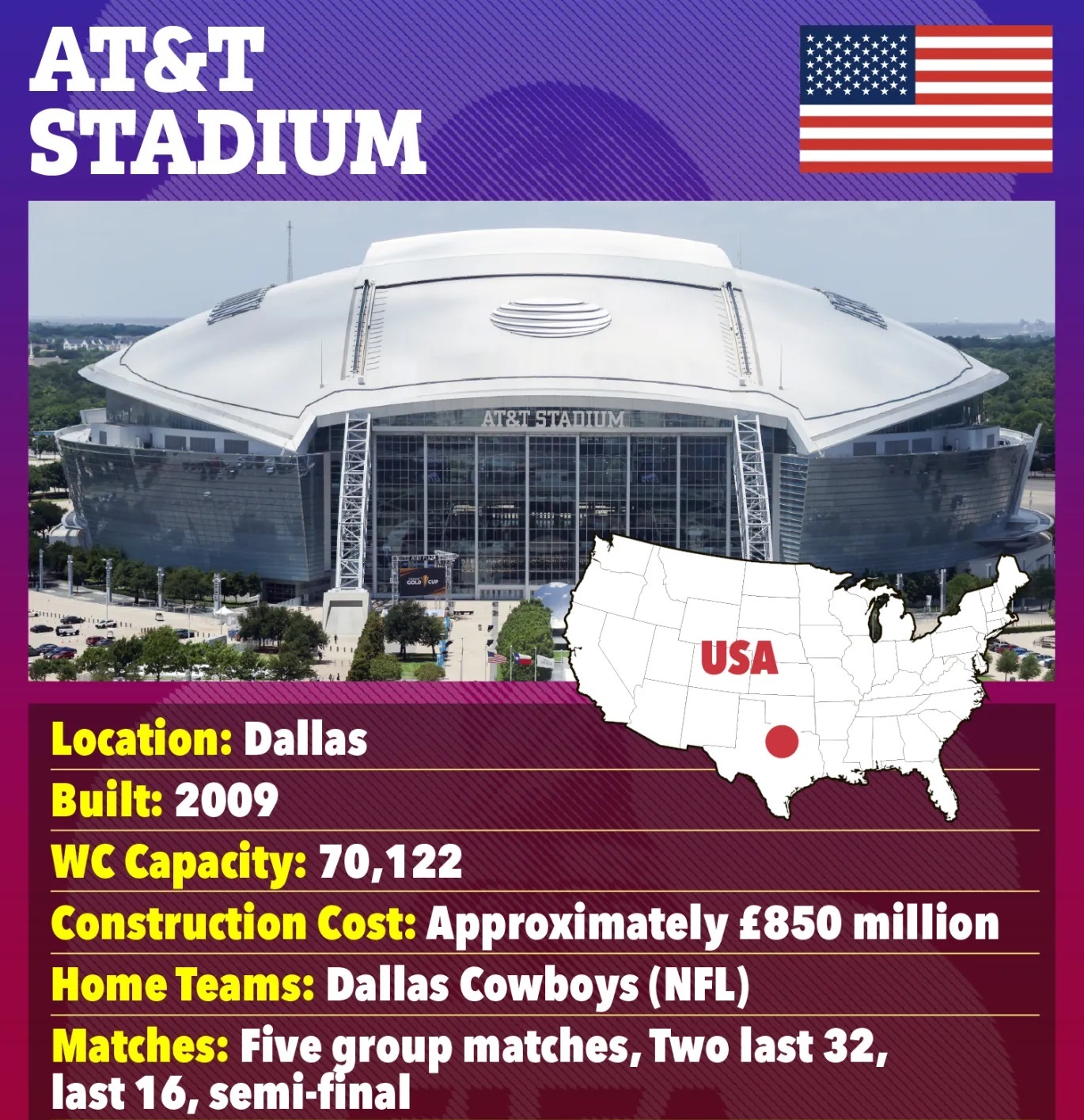 Staying in Texas and the AT&T Stadium in Dallas is the biggest venue being used this summer, with a capacity of 94,000 – but like with many NFL grounds, the changes to the pitch and configuration means the official Fifa capacity is significantly reduced.