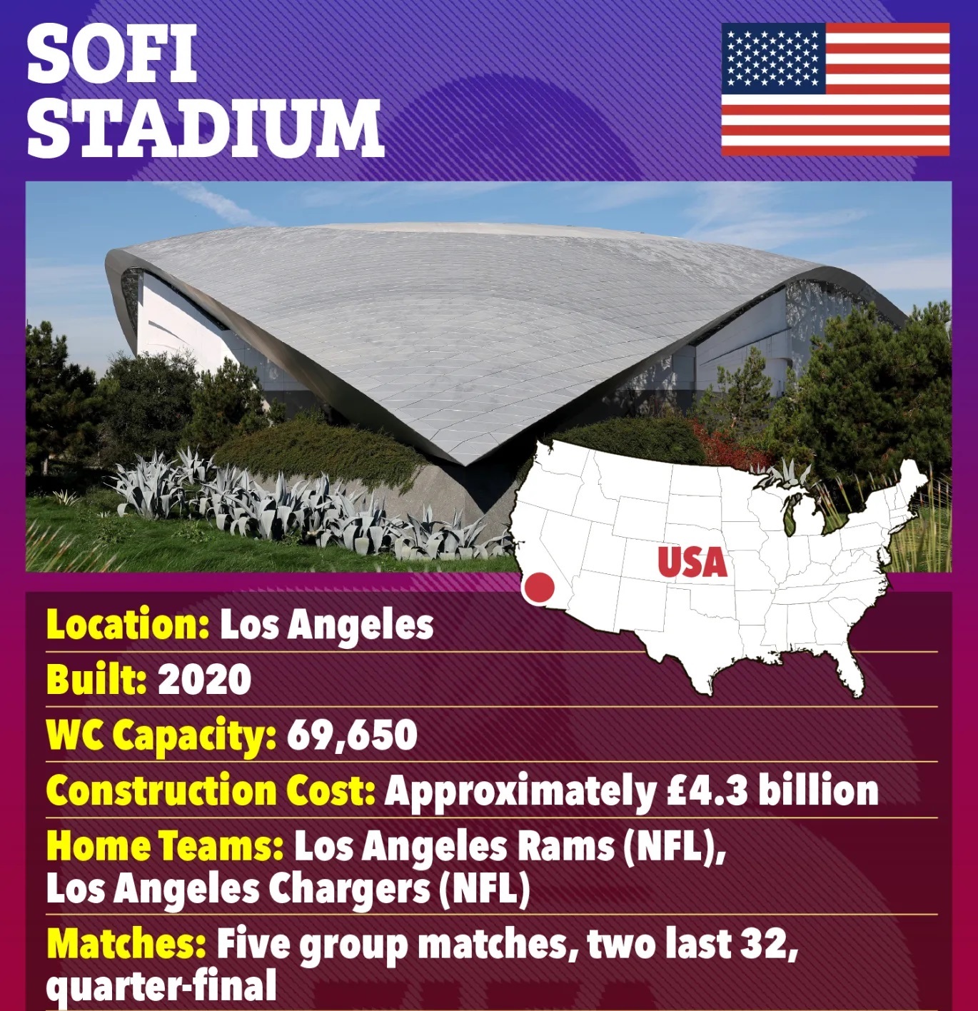 Positioned right under the flight path for their neighbours at LAX Airport, the SoFi was opened in 2020 at a cost of a reported $7.3billion (£5.3bn) and will be used for the 2027 Super Bowl and 2028 LA Olympics.