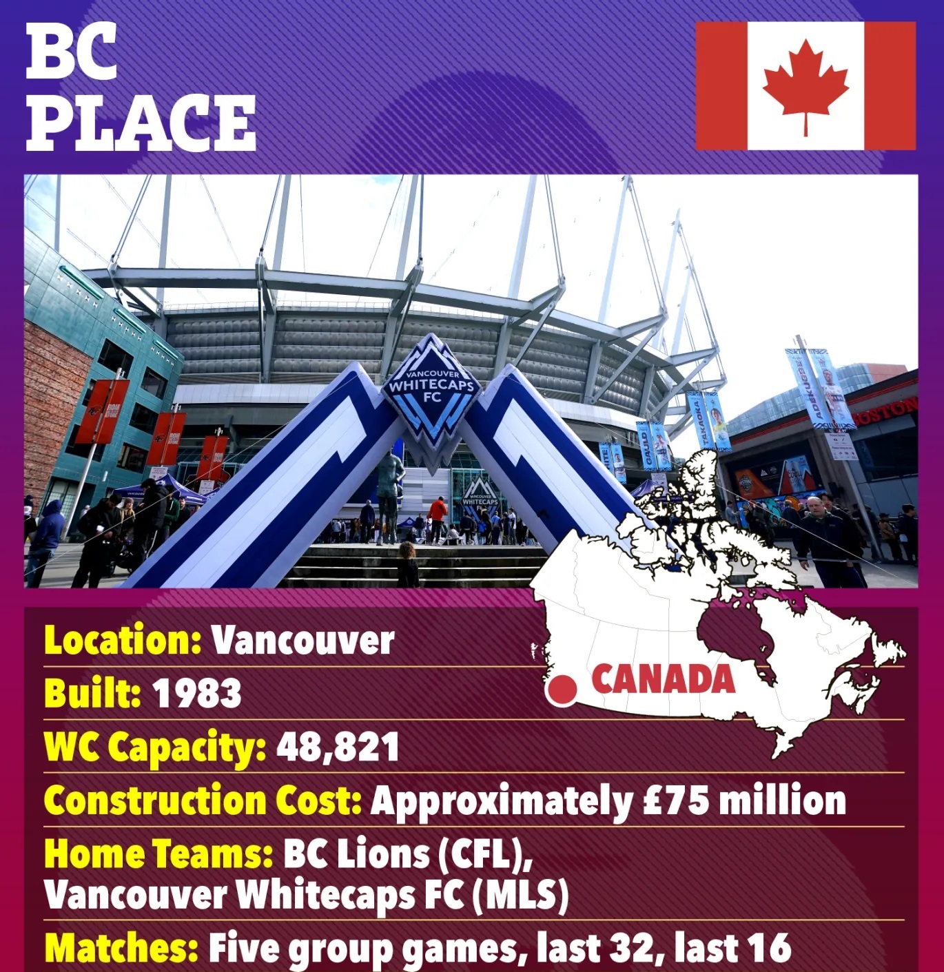 There are two stadiums for the World Cup in Canada, including BC Place in Vancouver.